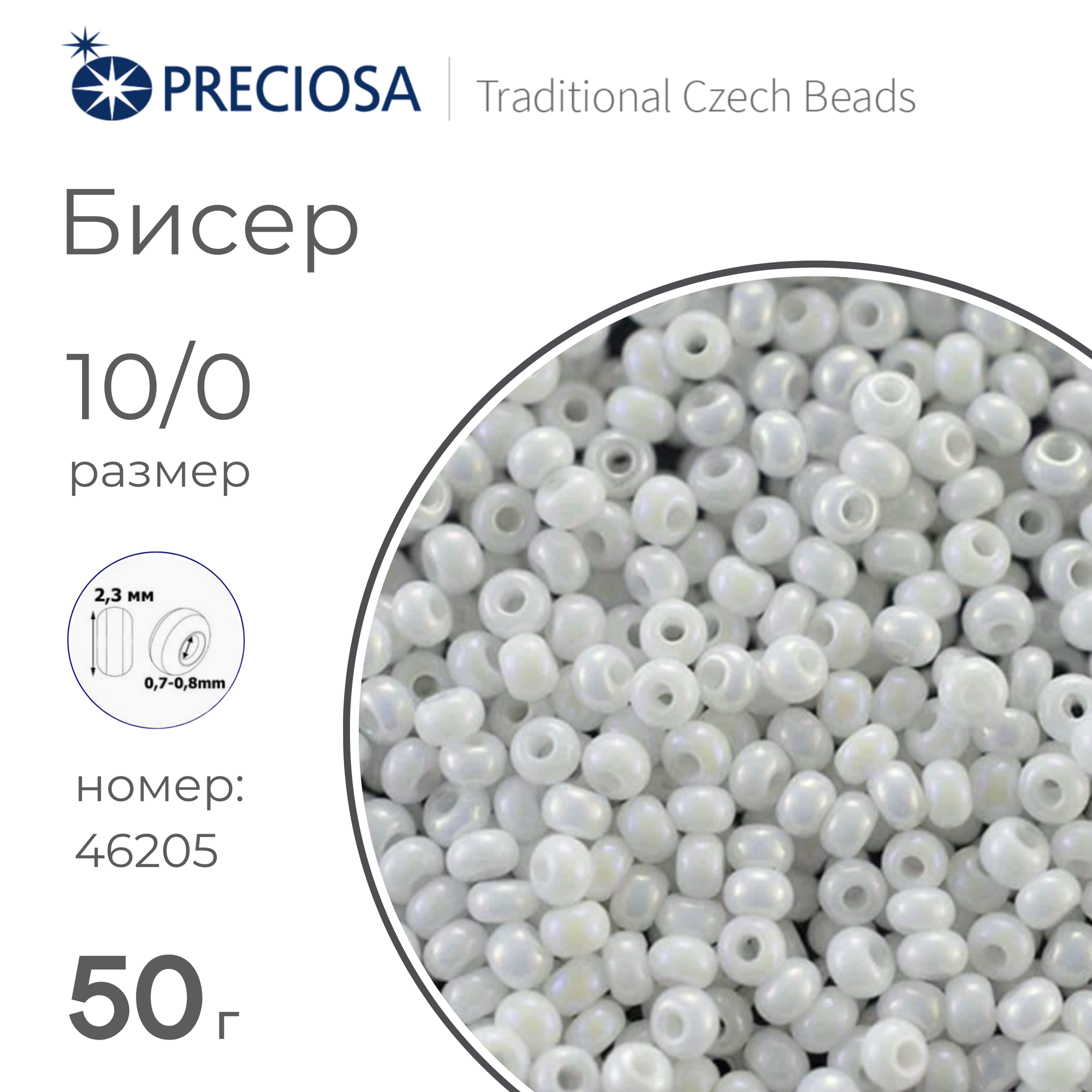 Бисер Preciosa Чехия (50 г) 46205 белый радужный непрозрачный информация: