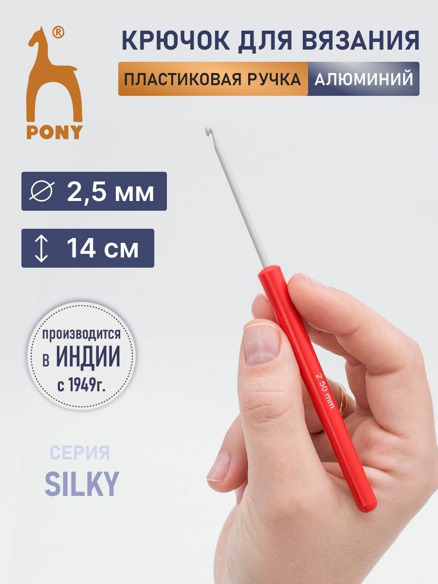 Крючок для вязания с пластиковой ручкой 2,5мм*14см, алюминий, PONY, 46202 информация: