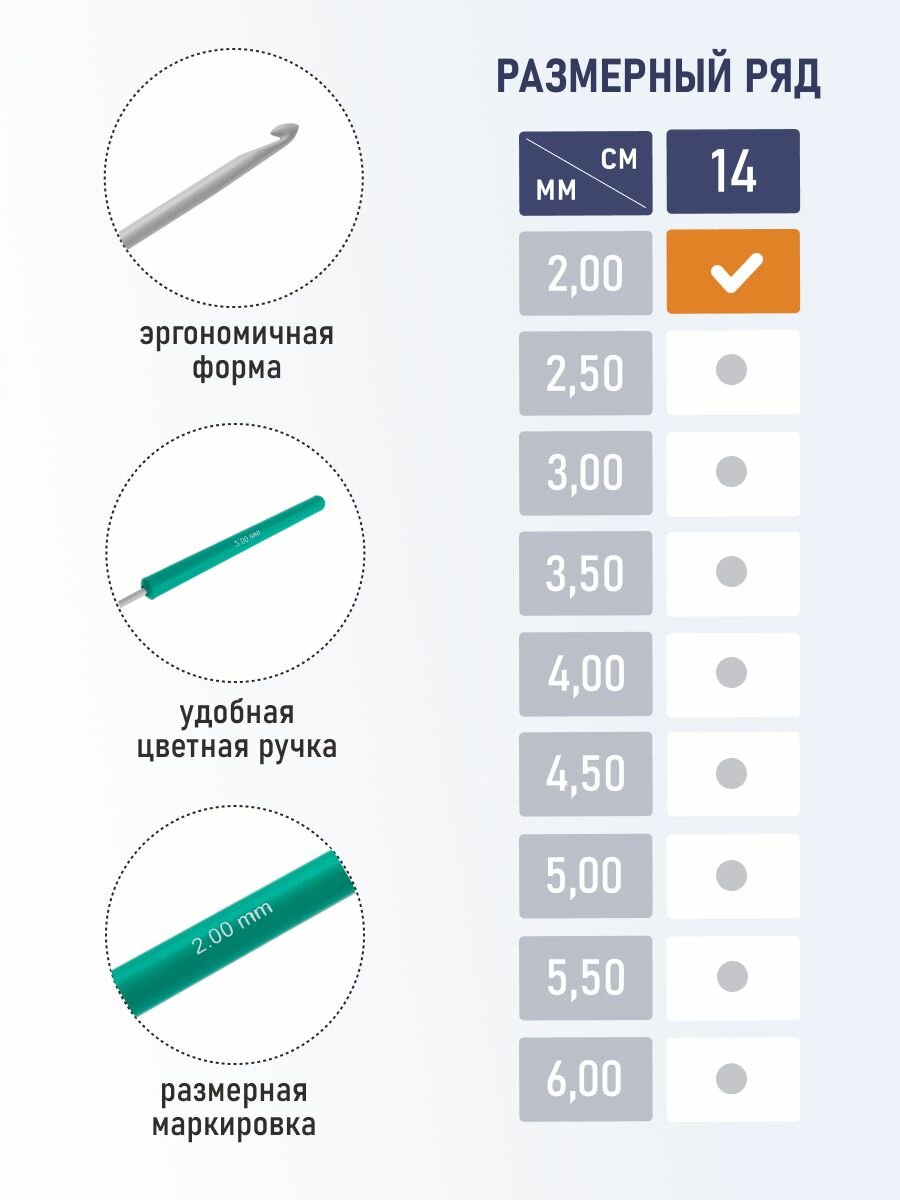 Крючок для вязания с пластиковой ручкой 2мм*14см, алюминий, PONY, 46201 информация: