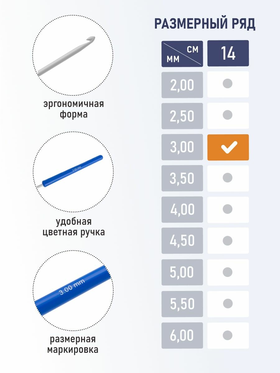 Крючок для вязания с пластиковой ручкой 3мм*14см, алюминий, PONY, 46203 информация: