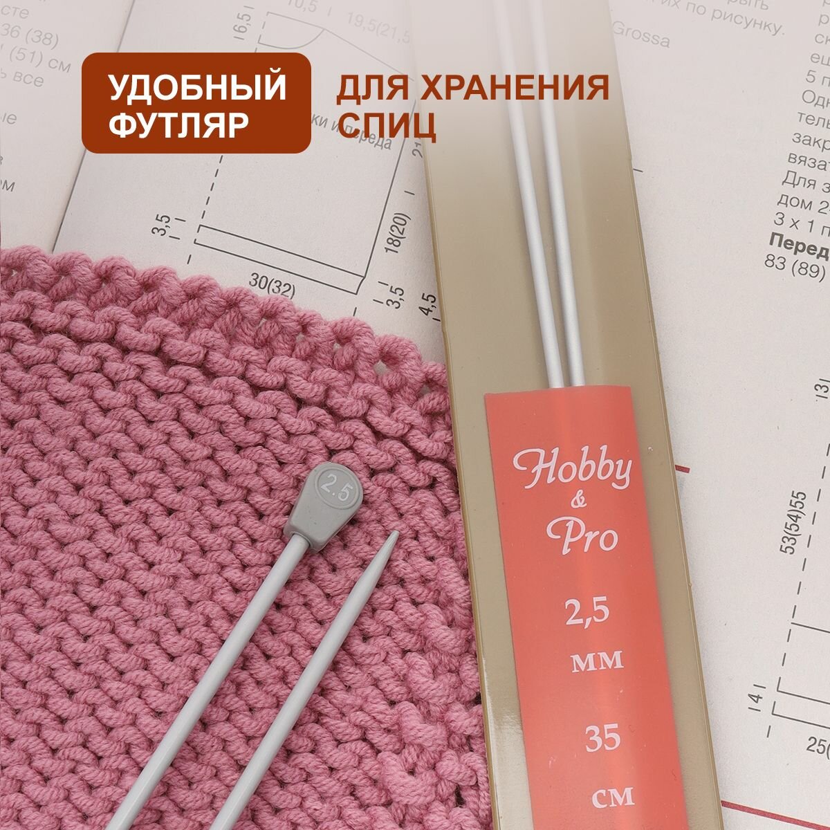 Спицы прямые алюминиевые с покрытием 35 см*2,5 мм, Hobby&Pro, 2 шт (упак)