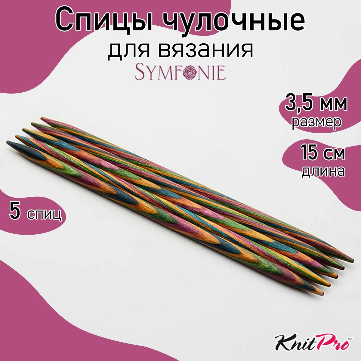 Спицы чулочные "Symfonie" 3,75мм/15см, дерево, многоцветный, 5шт в упаковке, KnitPro, арт.20135 1 104 ₽
