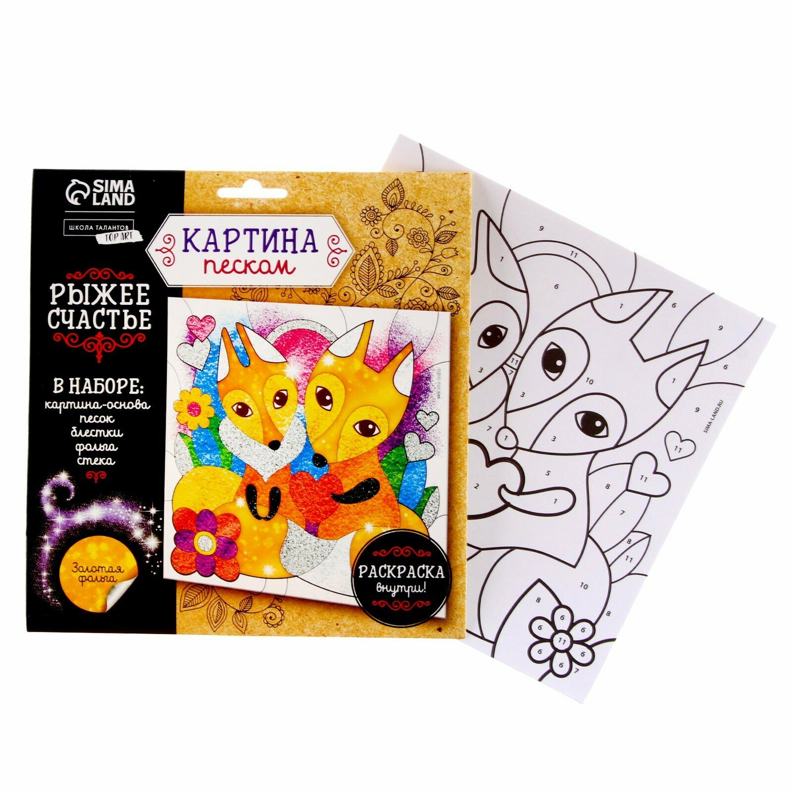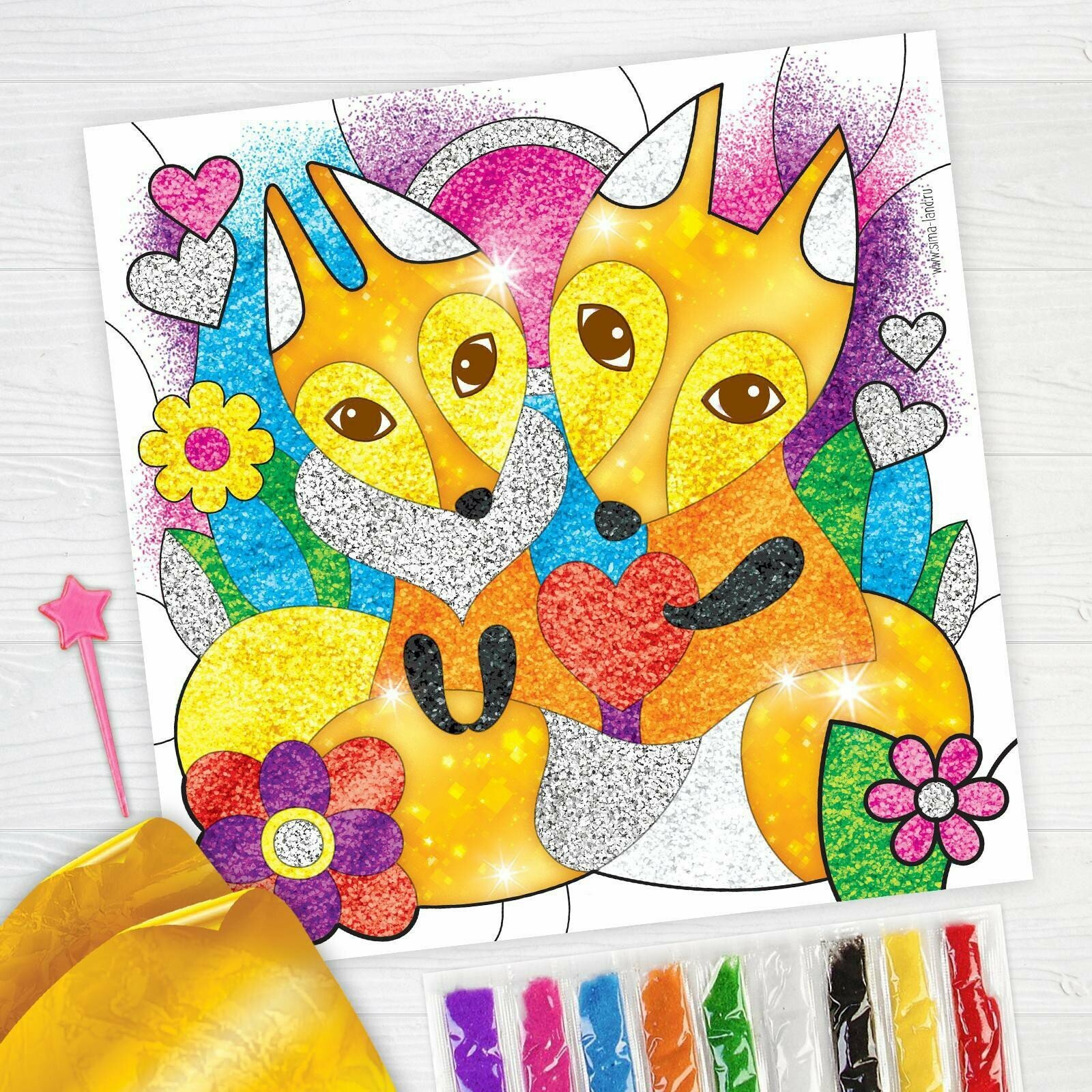 Фреска песком Школа талантов "Рыжее счастье", 9 цветов по 4 г, блестки, стека информация: