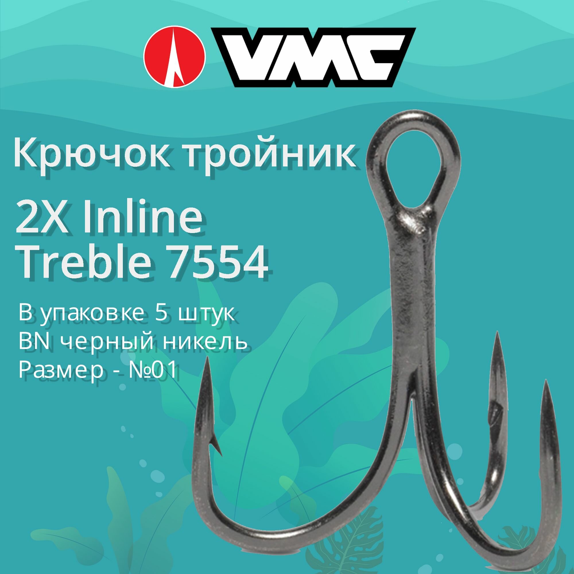 Крючки для рыбалки (тройник) VMC 2X Inline Treble 7554 BN (черн. никель) №01 (упаковка 5 штук)
