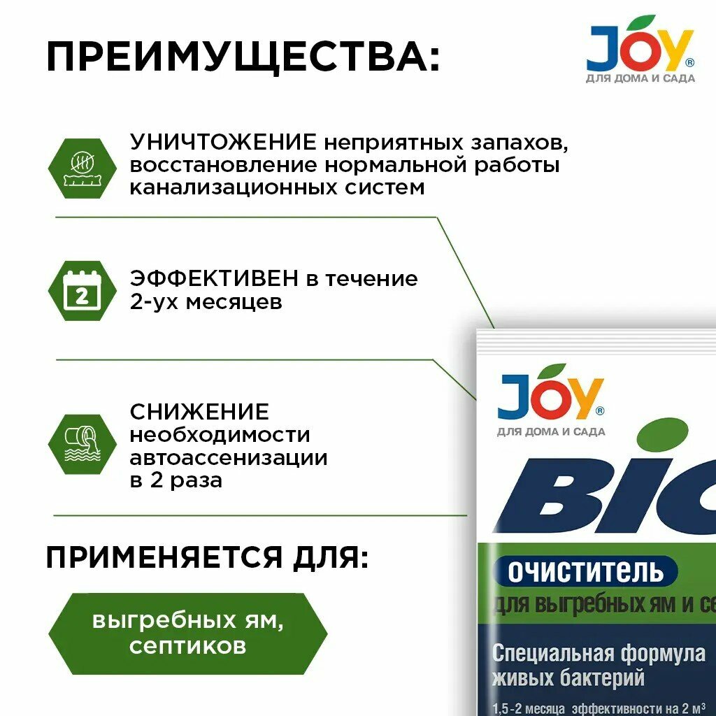 Биосостав для выгребных ям и септиков, Joy, BIO Очиститель, 70 г, орган, гранулы информация: