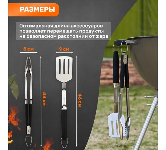 Отзывы на Набор для гриля, барбекю, мангала из нержавеющей стали с термопластичной резиновой рукояткой вебер, щипцы + лопатка