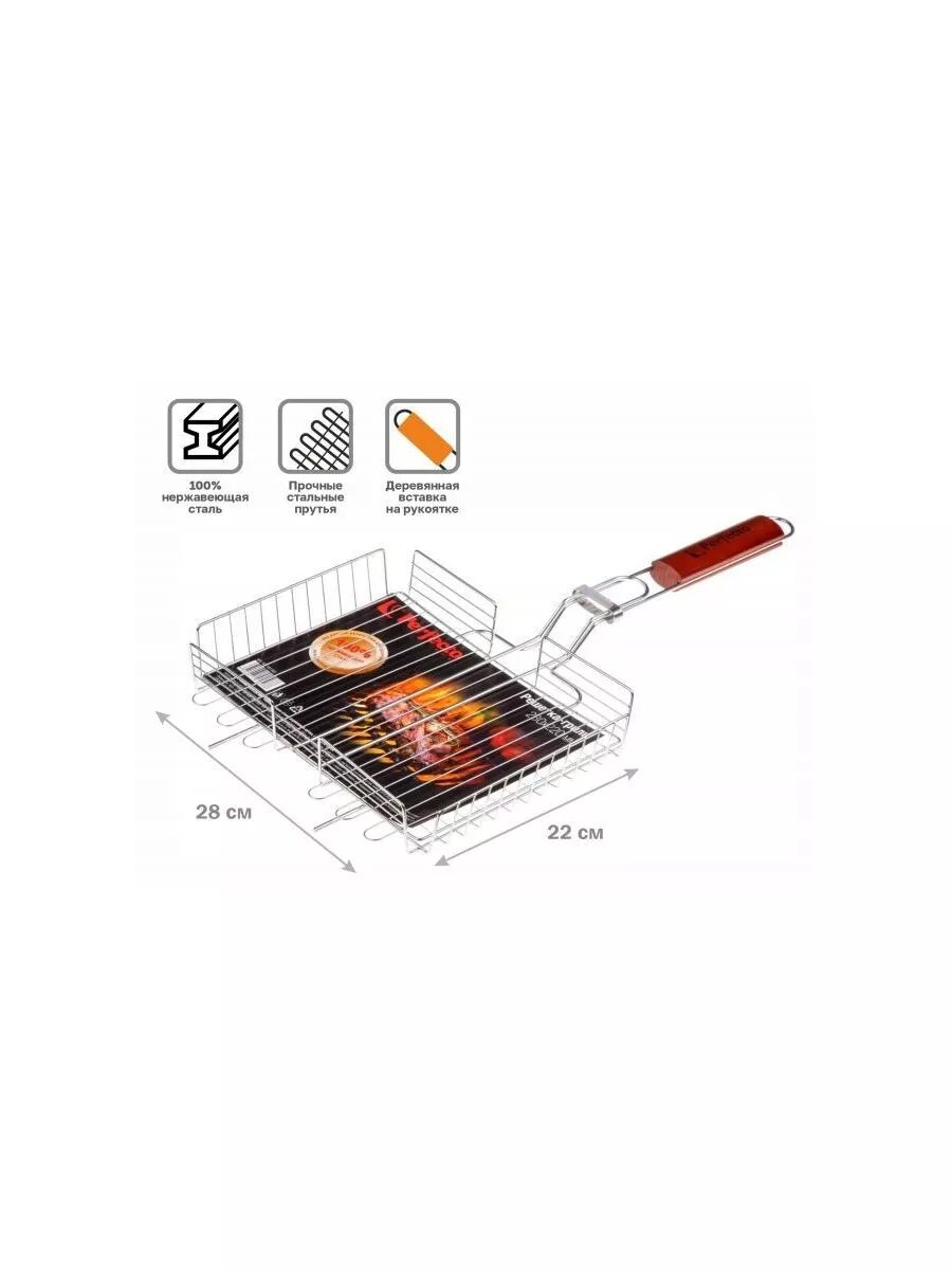 Решетка гриль LESNIKOVA, для птицы, металл, деревянная рукоять, 35x26 см