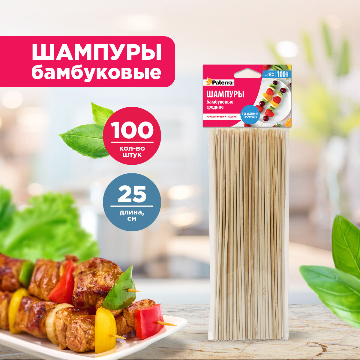 Отзывы на Шампуры для шашлыка, бамбук, 100 штук, d=3 мм х 250 мм, PATERRA (401-956)