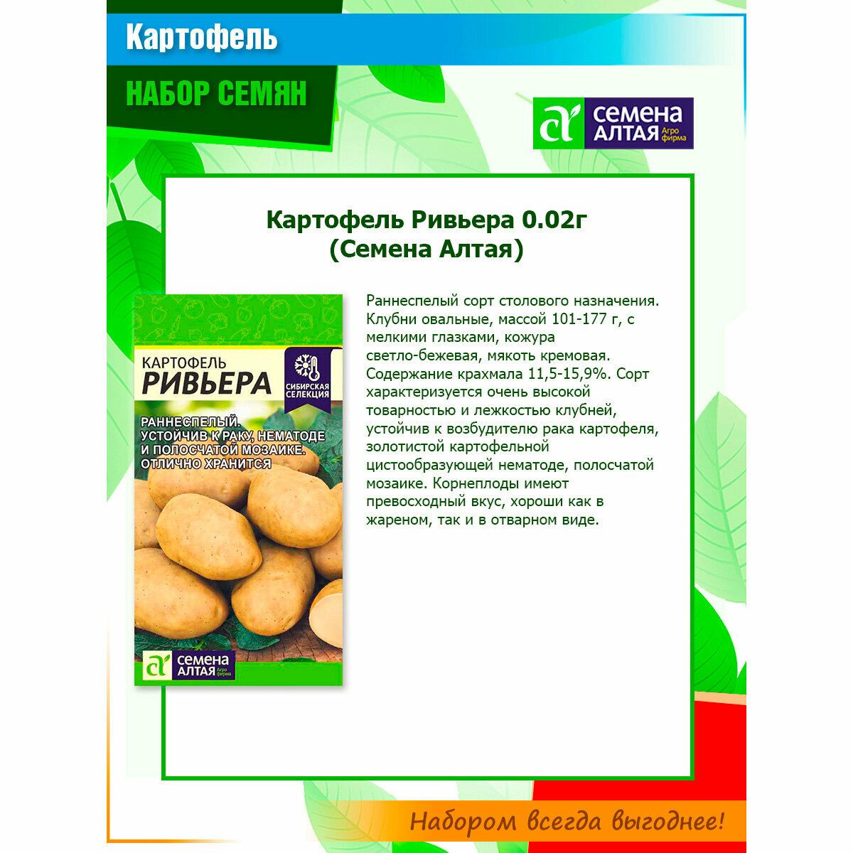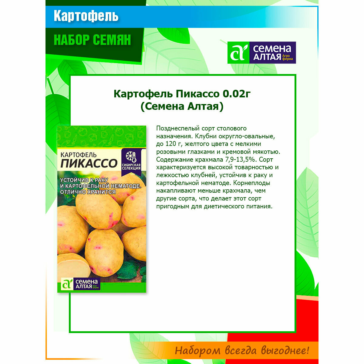 Набор семян семенного картофеля Пикассо, Романо, Ривьера от Семена Алтая (3 пачки) информация: