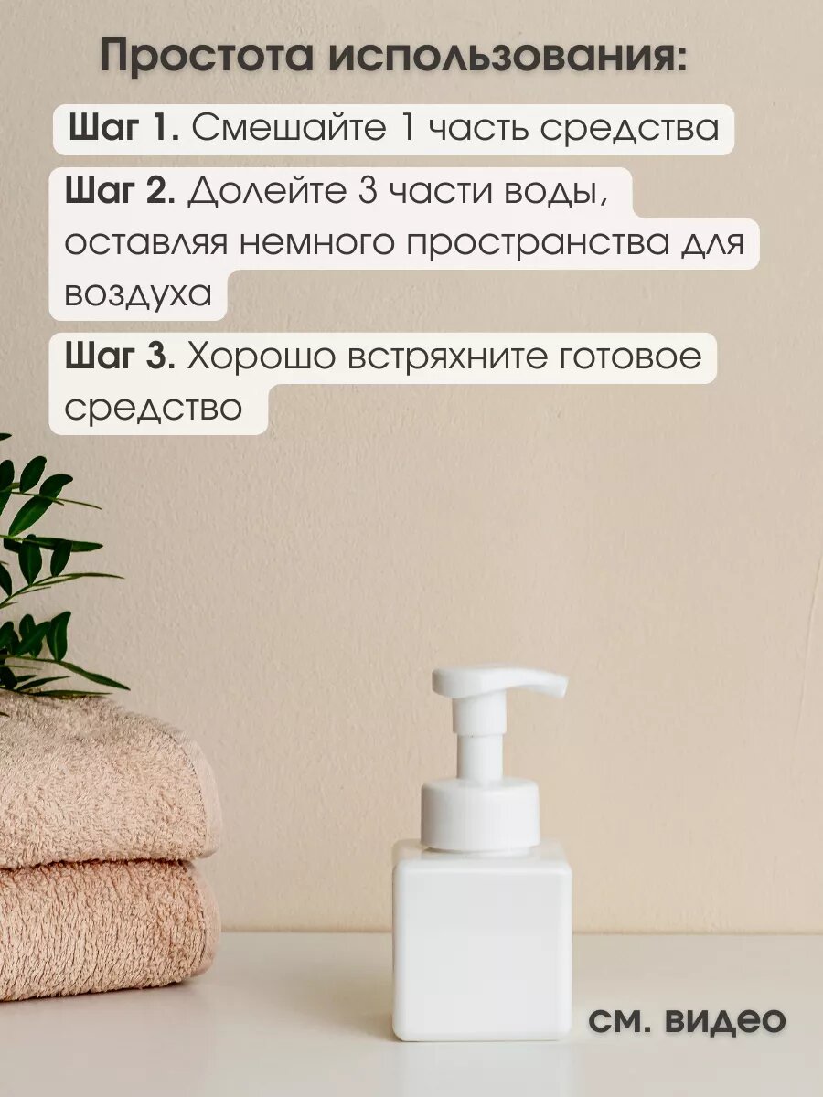 Дозатор AROMAFLOW, для жидкого мыла, пенный, квадратный, 250мл, прозрачный с белой помпой 299 ₽