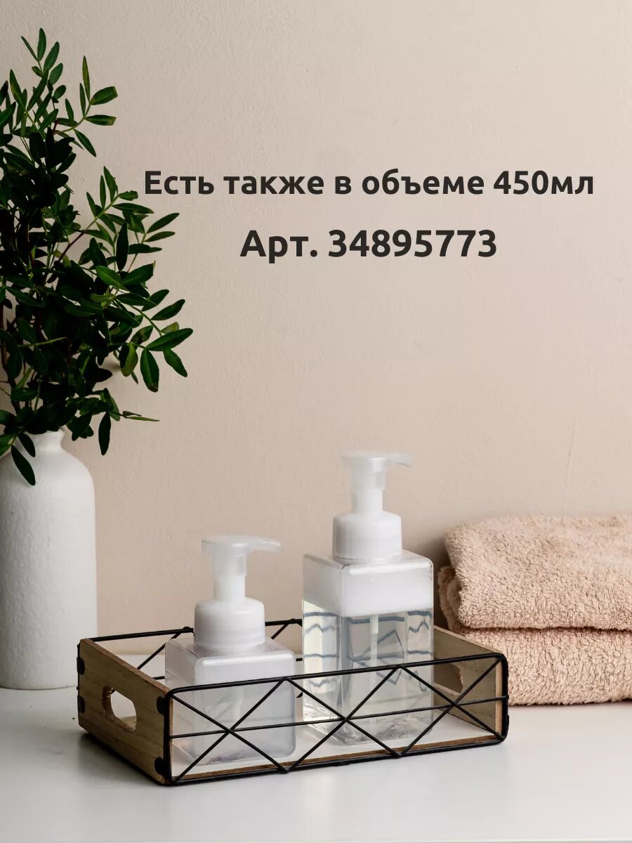 Дозатор AROMAFLOW, для жидкого мыла, пенный, квадратный, 250мл, прозрачный с белой помпой 299 ₽