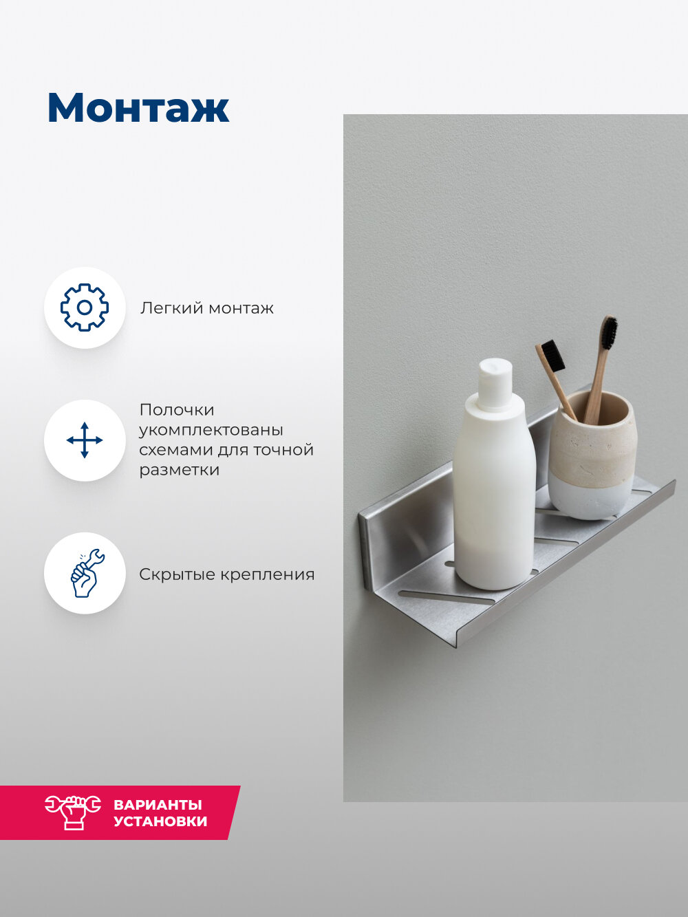Полка Aquanet Магнум 30x8 сталь браш, открытая информация: