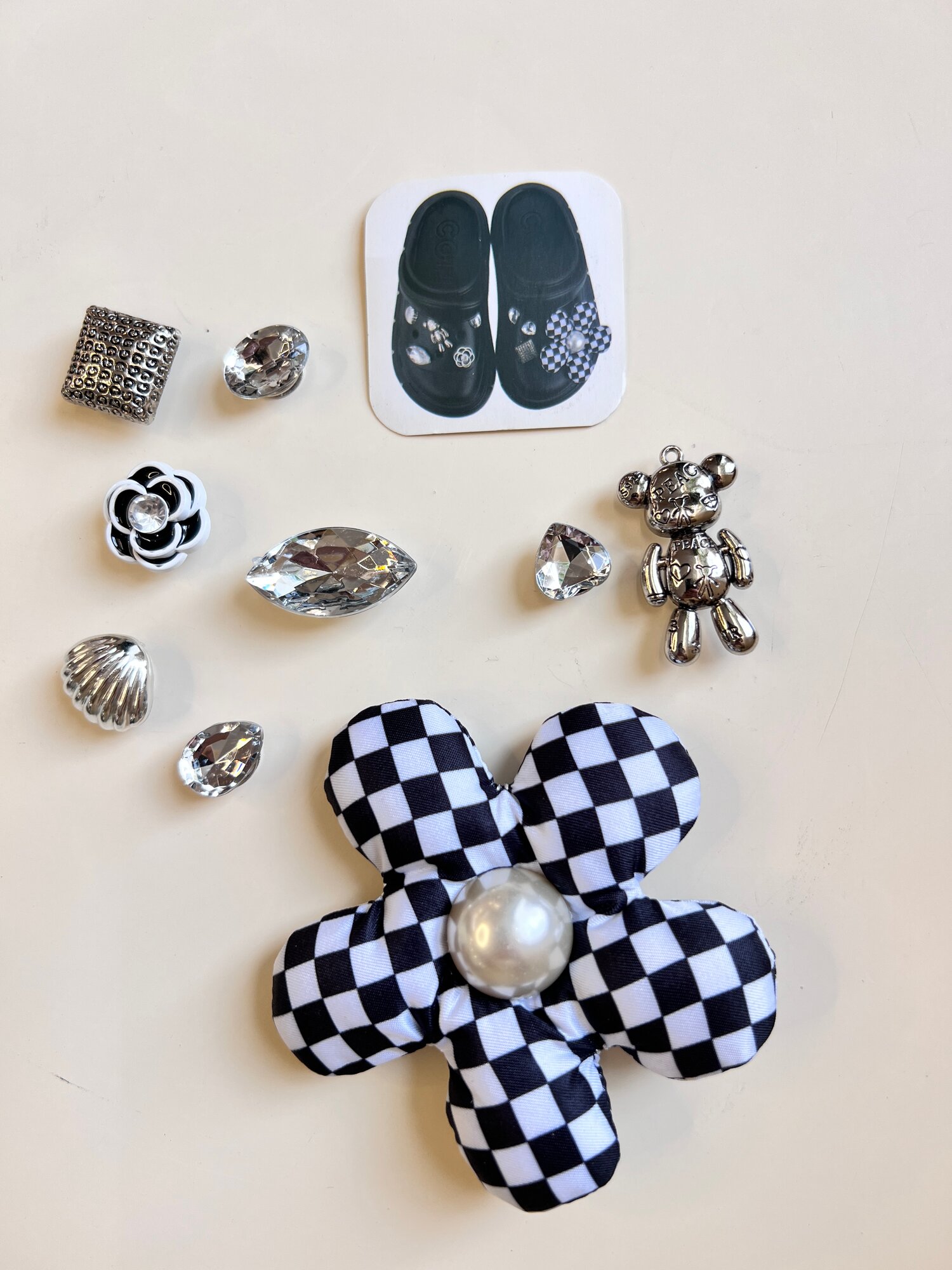 Отзывы на Джибитсы Sundelica набор, украшение для обуви, черно-белый в клеточку цветок