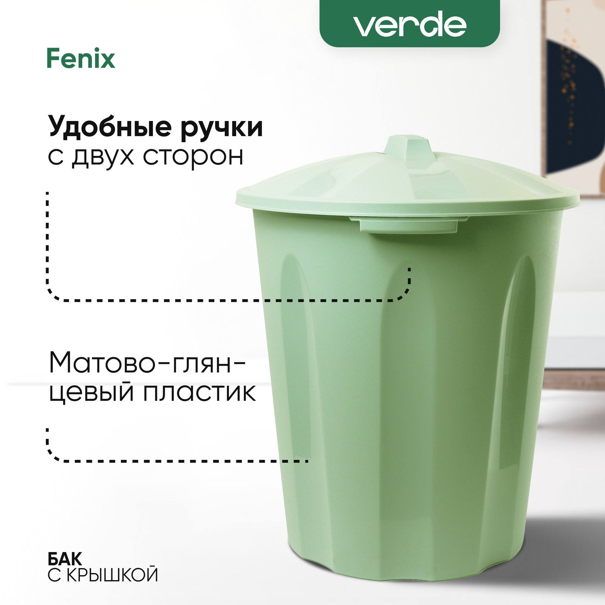 Бак пластик, 40 л, с крышкой, универсальный, оливковый, Verde, FENIX, 37040