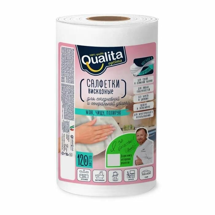 Салфетки хозяйственные Qualita в рулоне вискозные для экспресс-уборки, 120 шт информация:
