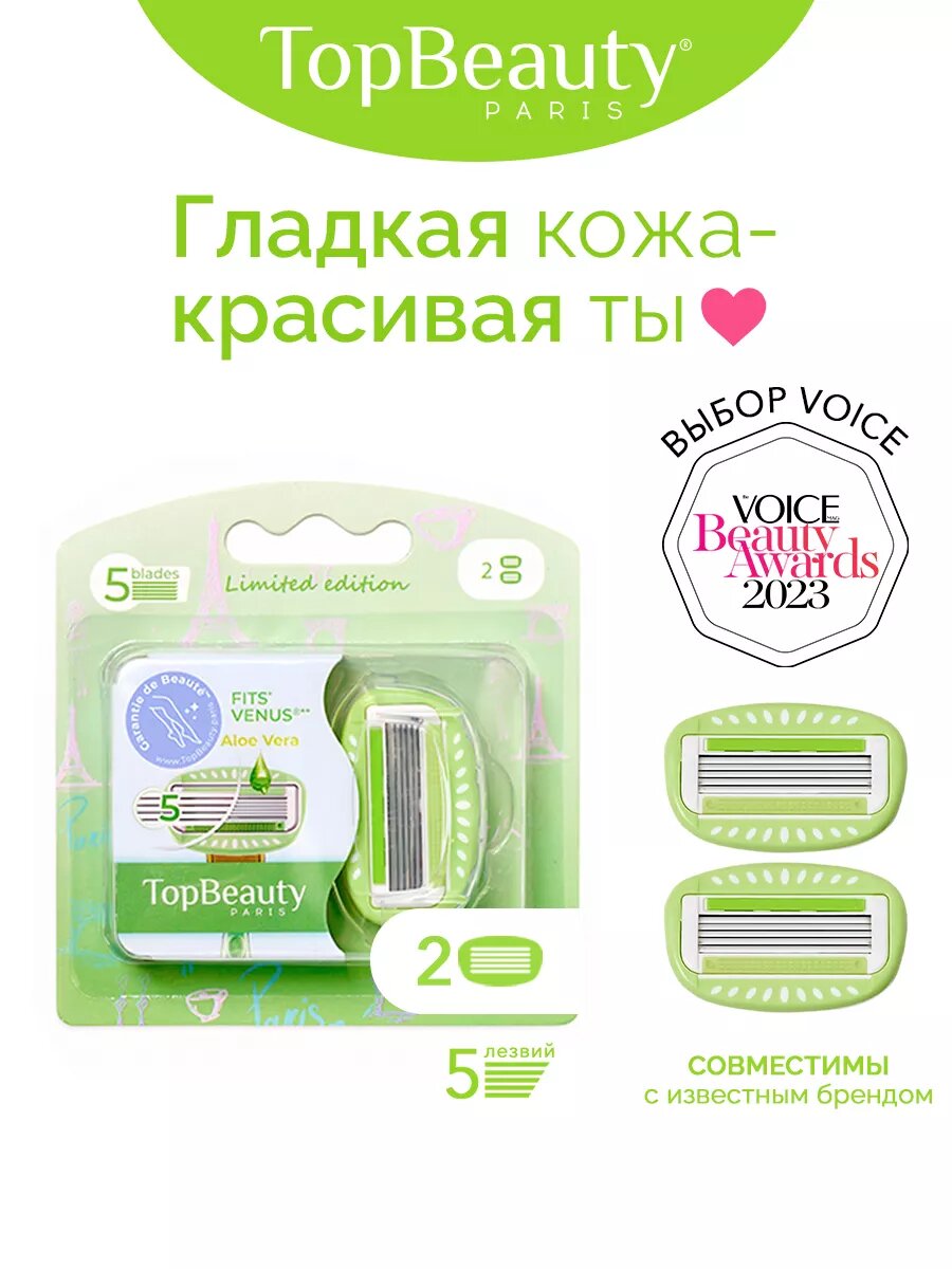 10 цен на Кассеты для бритвенных станков TopBeauty Paris Cменные женские, 5 лезвий, зеленый цвет, совместимы с Venus, 2 шт