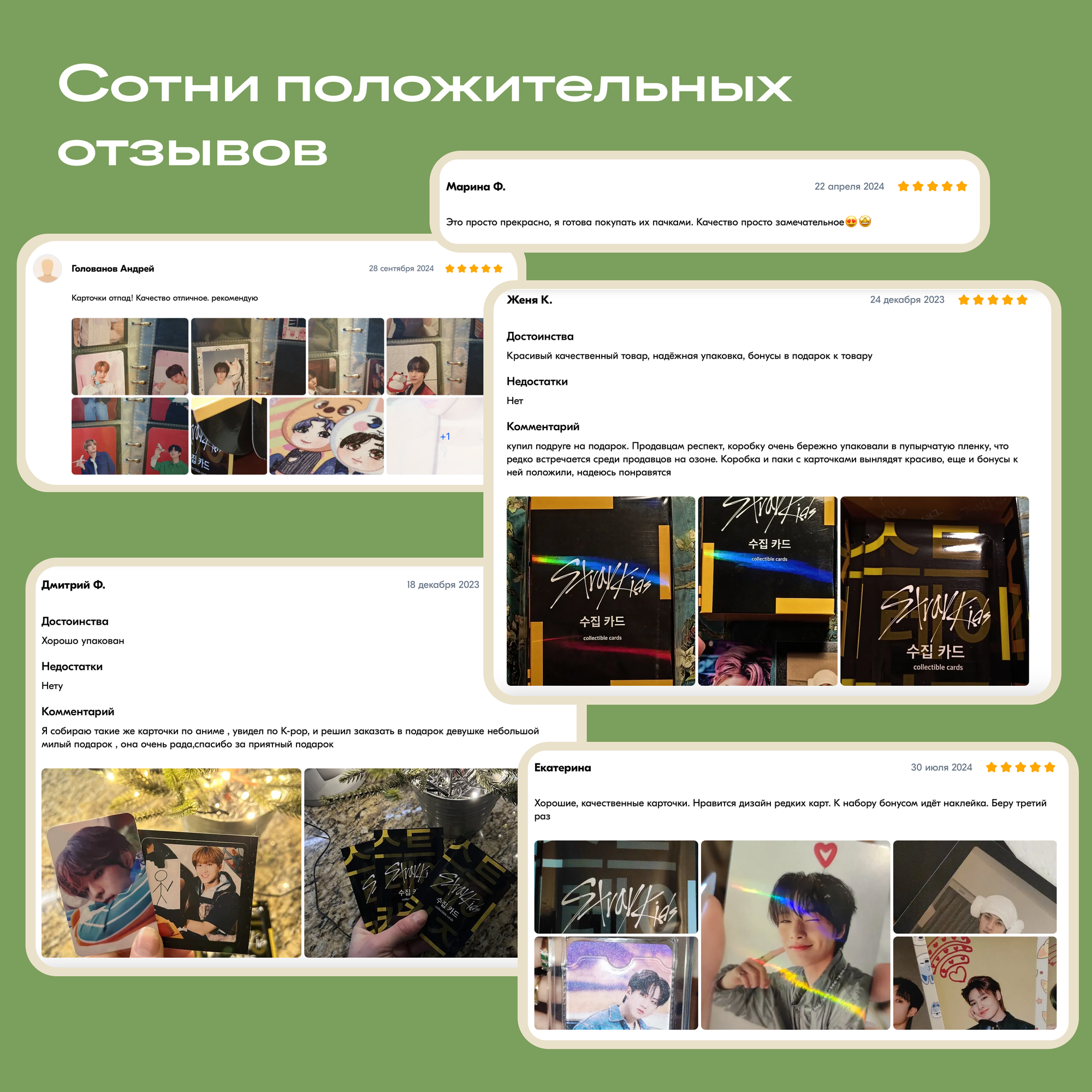 Отзывы на Подарочный бокс Stray Kids для фанатов из 6 упаковок с редкими коллекционными картами Полароидами, Глиттерами и Голографией. Yellow Box vol.2