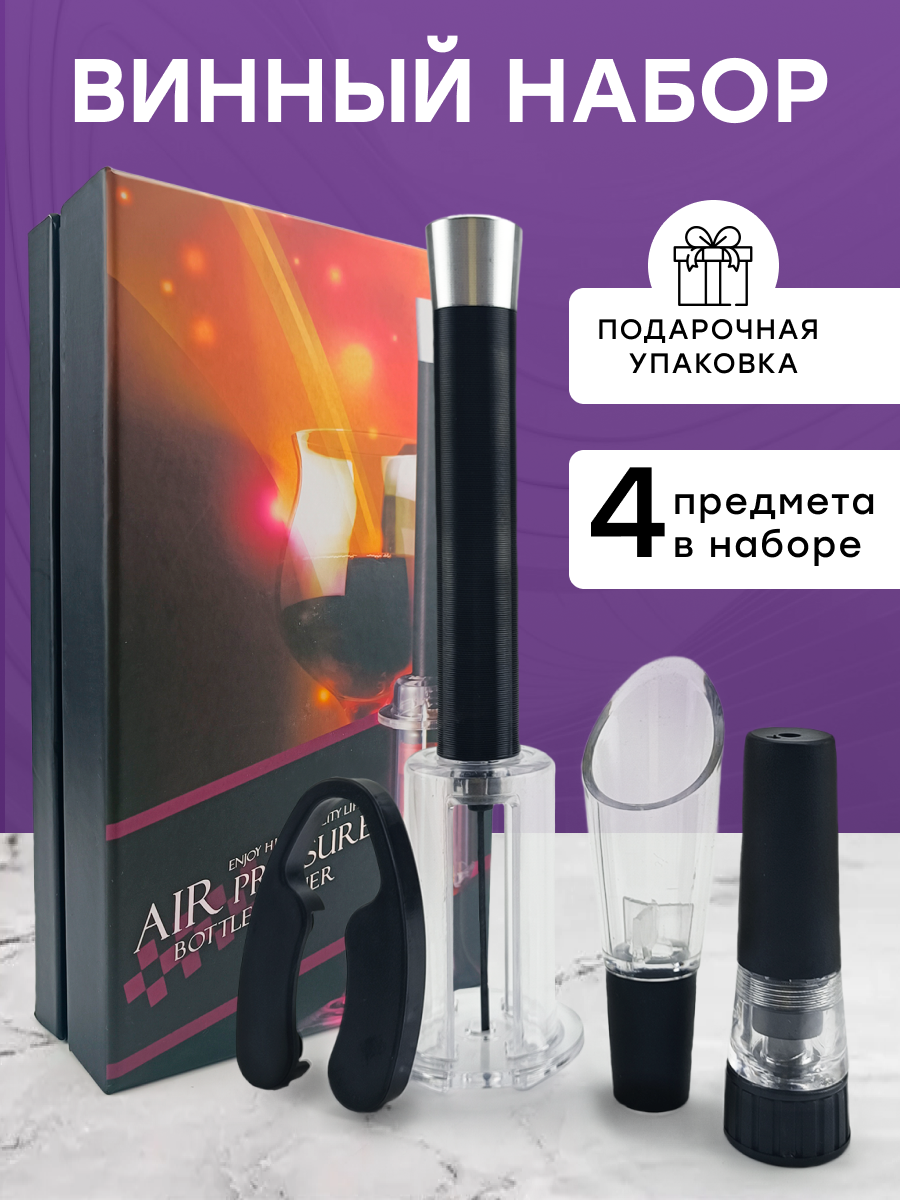 10 цен на Набор для вина: штопор, аэратор, вакумная пробка, удалитель фольги + подарочная коробка
