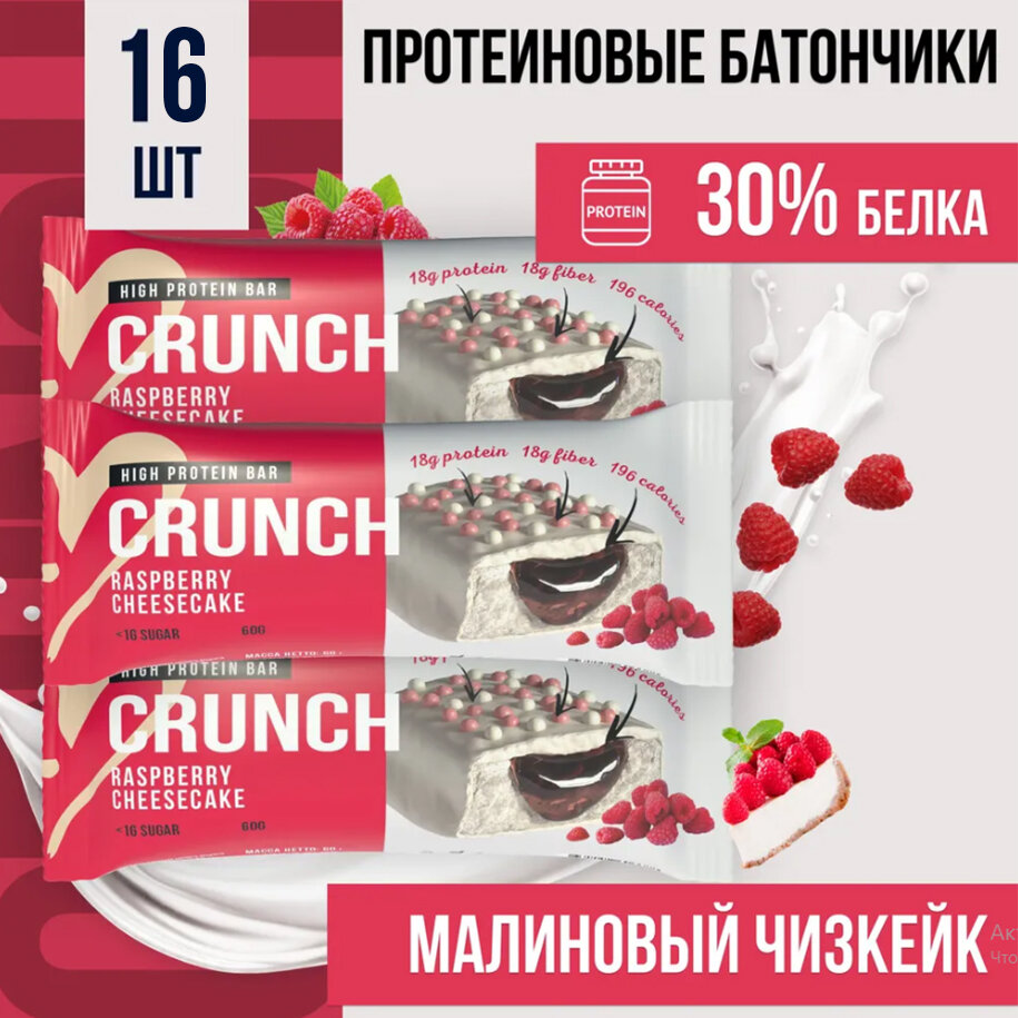 10 цен на Протеиновый батончик BOOTYBAR Crunch, Малиновый чизкейк, 16 шт по 60 г