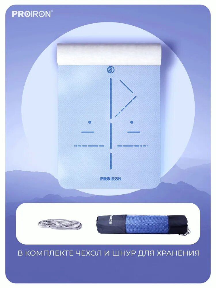10 цен на Коврик Proiron для йоги и фитнеса 1830*800*7мм TPE, серо-синий, К1887ТСС