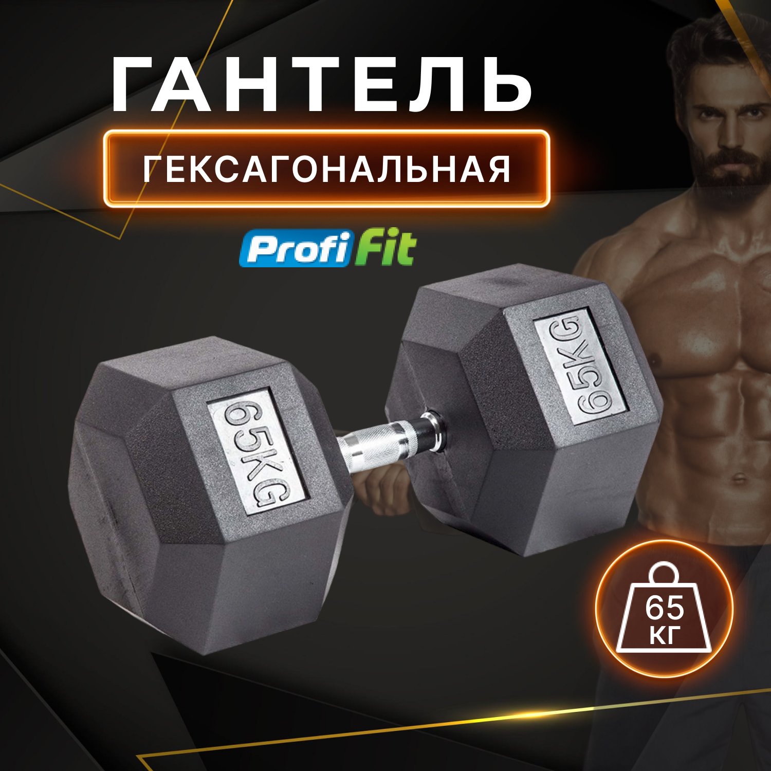 Гантель гексагональная обрезиненная PROFI-FIT 65 кг информация: