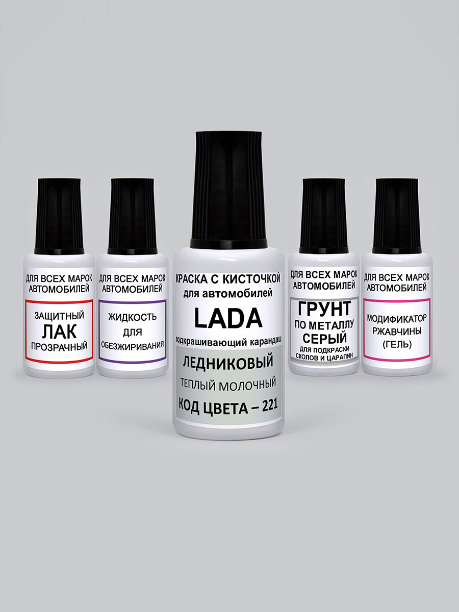 Ремкомплект для авто 221 автоэмаль для Lada Ледниковый, Белый молочный, PODKRASKA, 5 флаконов информация: