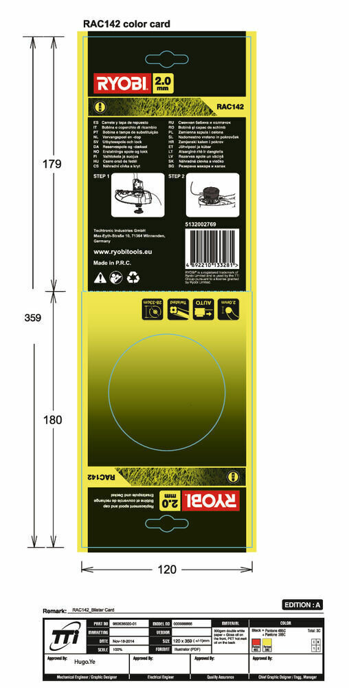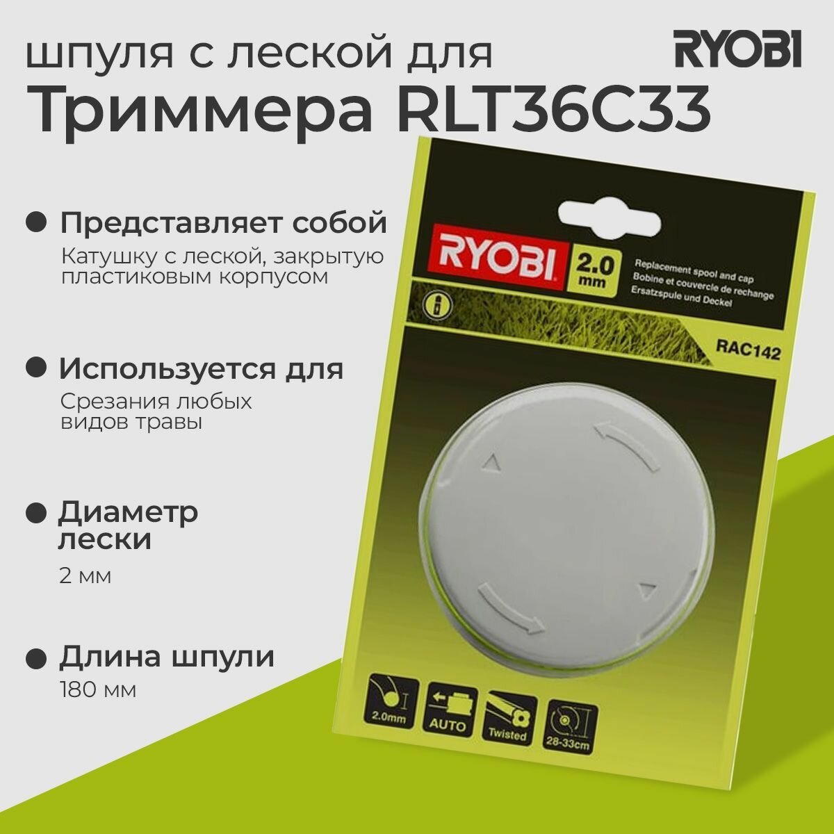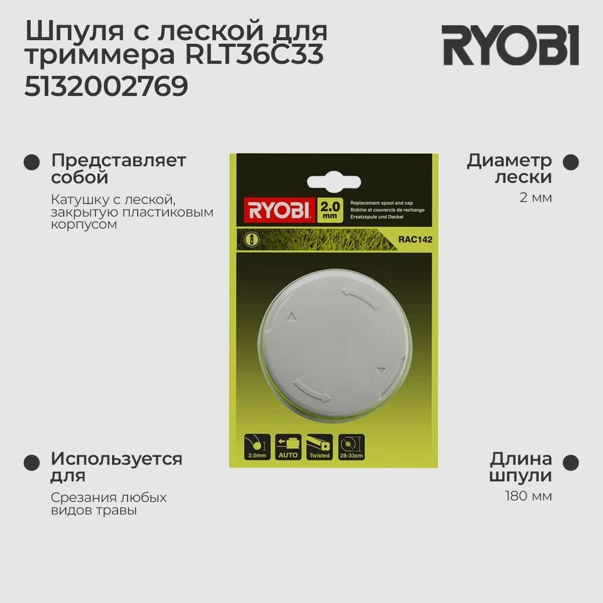 Ryobi Шпуля с леской 2,0 мм для RLT36 RAC142 5132002769 информация: