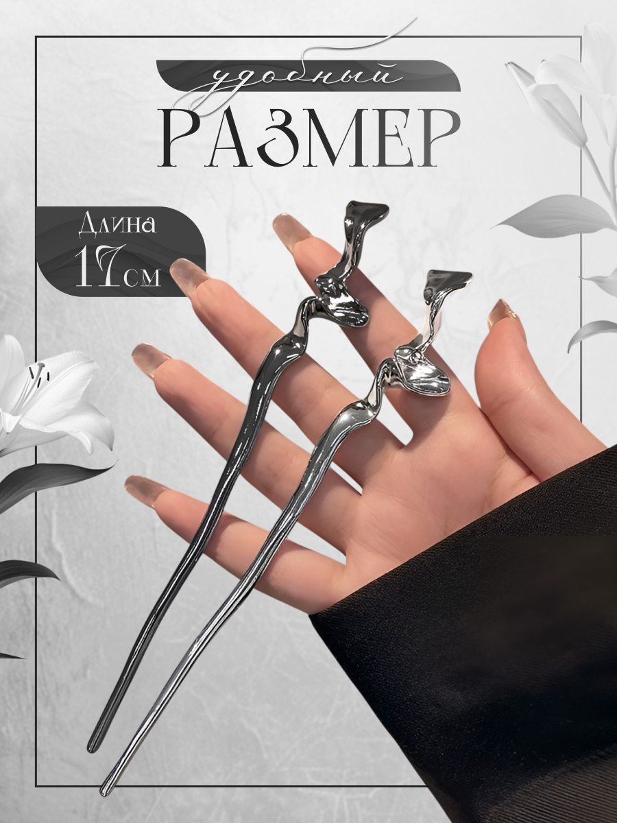 10 цен на Шпильки для волос Меньшикова "Кандзаси", металл, графит, прямые, длина 17см, 2шт