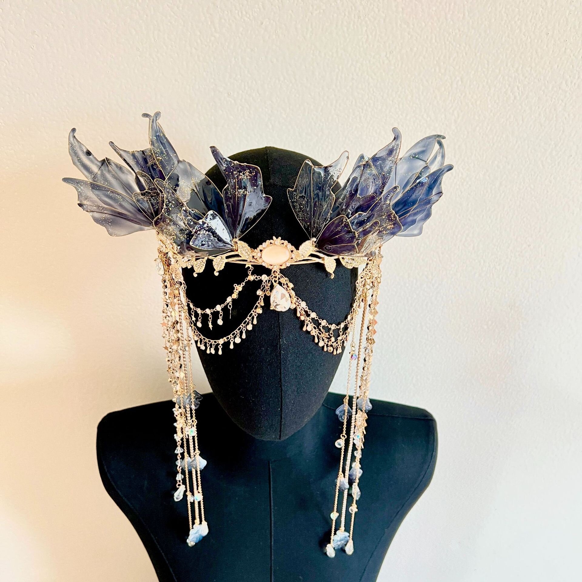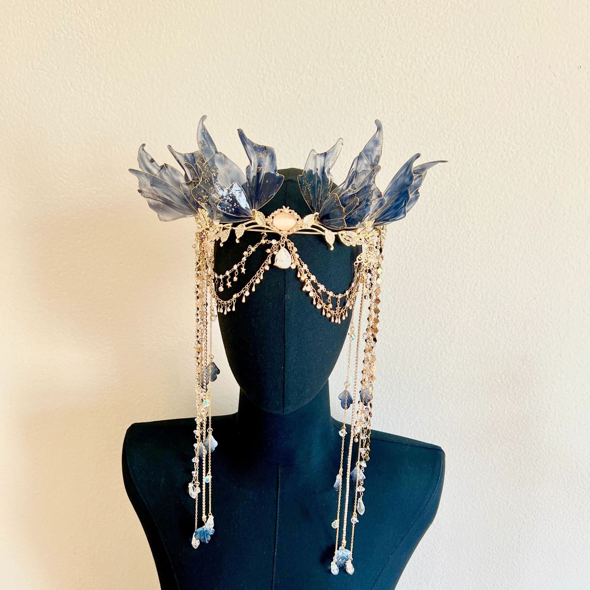 Отзывы на Свадебная тиара / Диадема Эльфийская для волос с подвесками золотистый/черный / Украшение на голову из цепочек Тика (АZ)