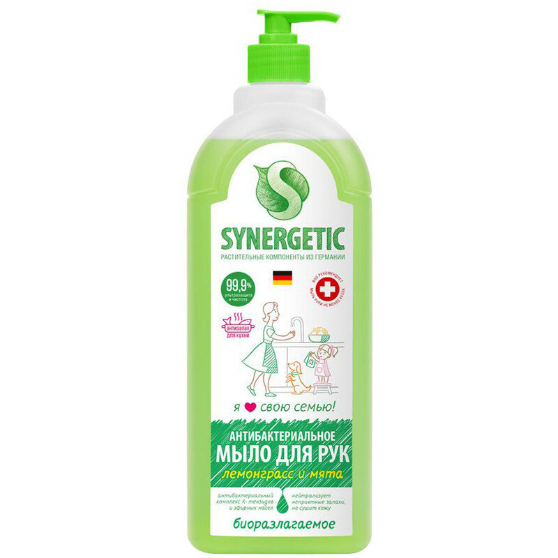 Отзывы на Мыло жидкое Synergetic "Лемонграсс и мята", биоразлагаемое, антибактер., антизапах., с дозатором, 1л (арт. 316934)