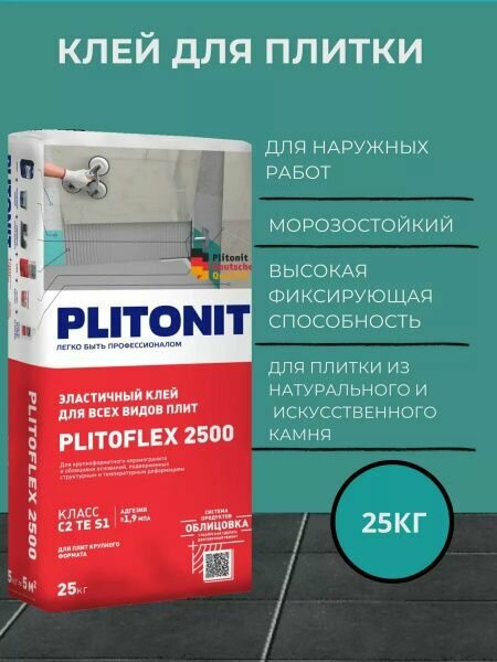 Плитонит PLITOFLEX 2500 Клей для плитки эластичный серый класс С2ТЕ информация: