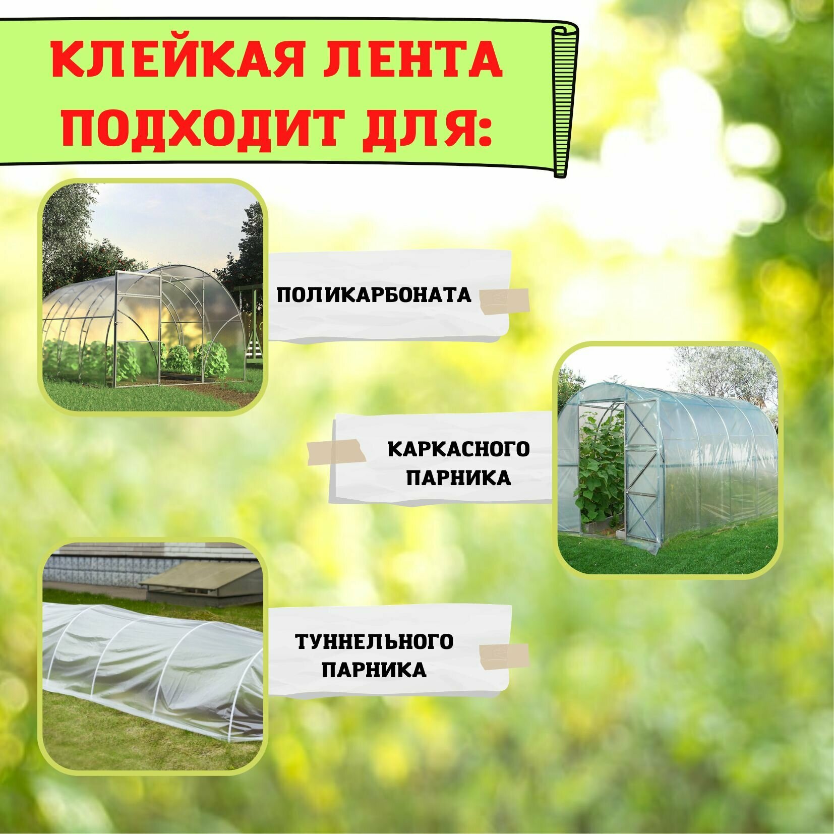 10 цен на Клейкая лента для ремонта теплиц, парников из поликарбоната 10см на 9,5м, толщина 150 мкм, MG
