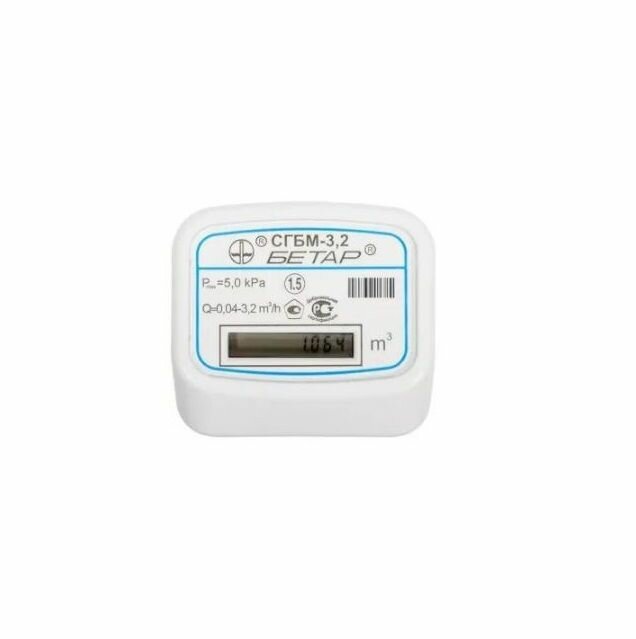 Счетчик газа Бетар СГБМ-3.2, 2024 г., с накидной гайкой 1/2 информация: