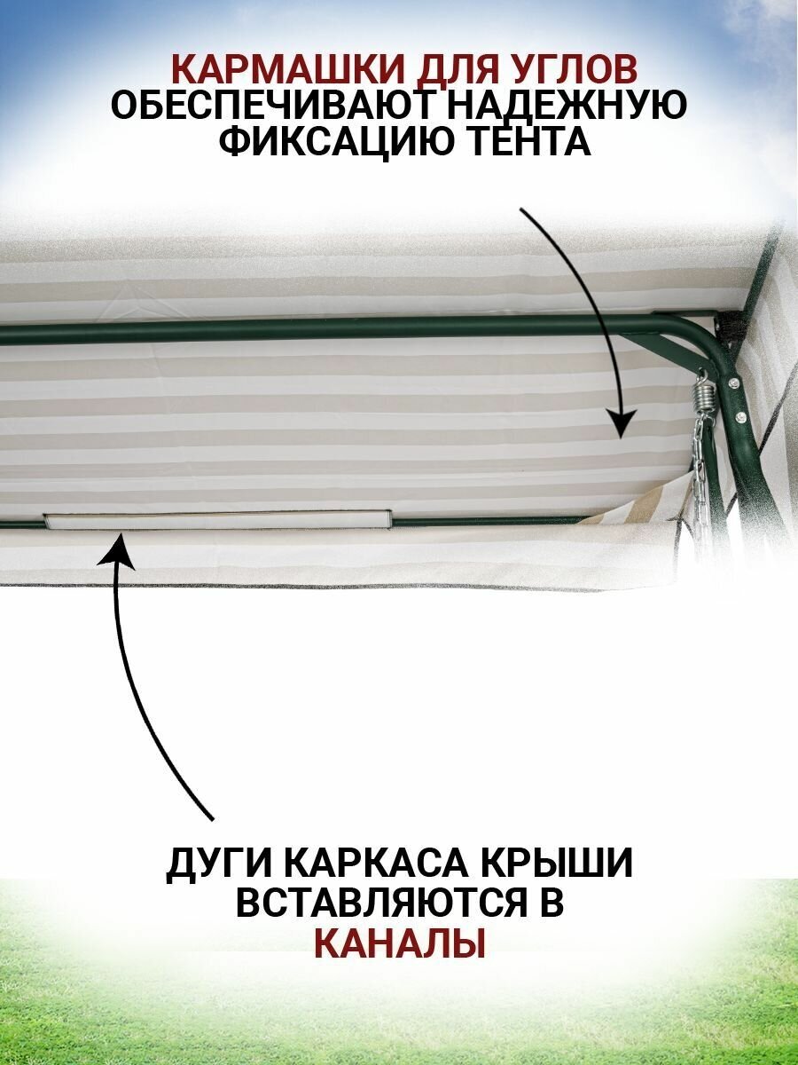 Тент крыша для садовых качелей Сорренто 220х119 см из материала оксфорд 210, бежево-белый информация: