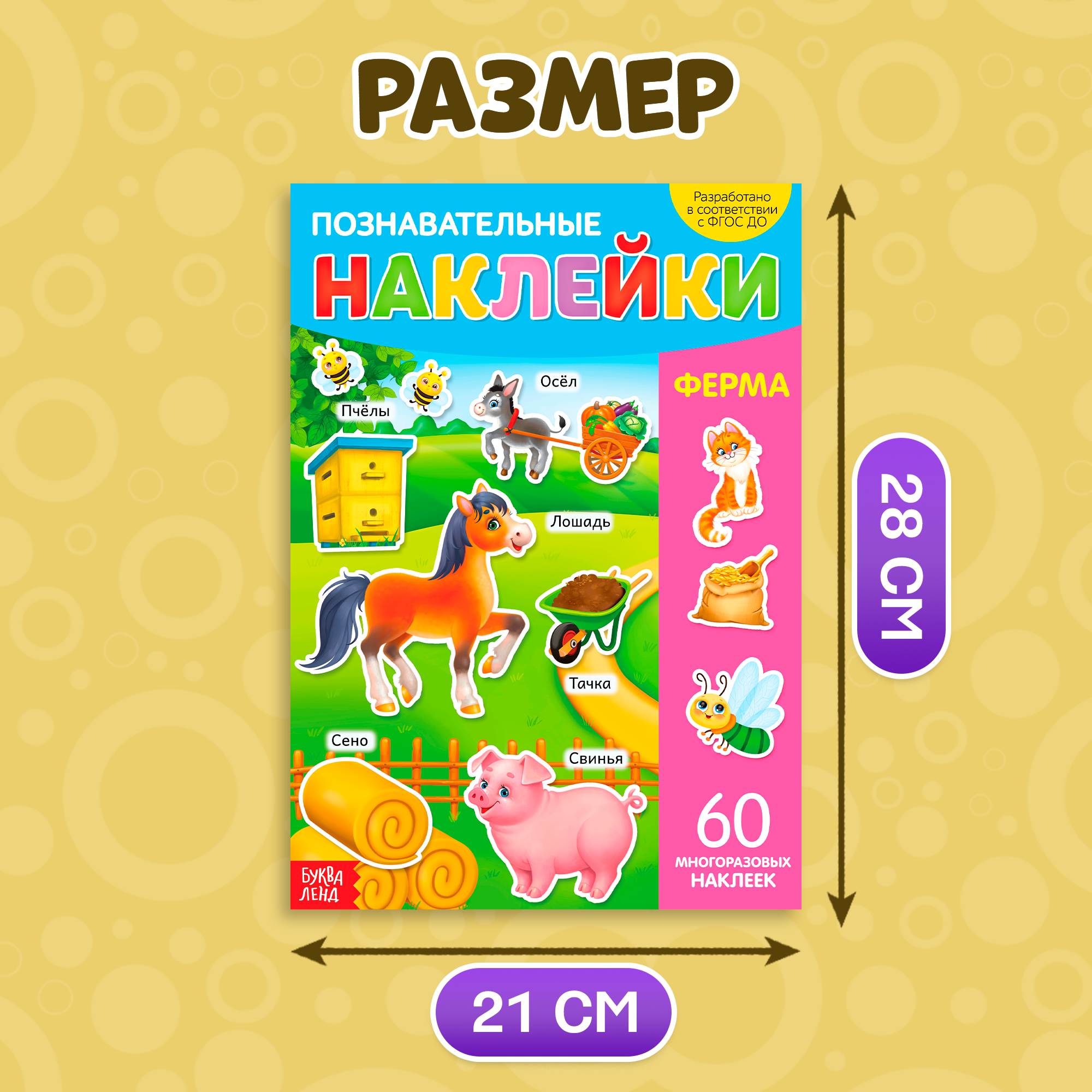 Книга буква-ленд «Ферма», с многоразовыми наклейками, формат А4 информация: