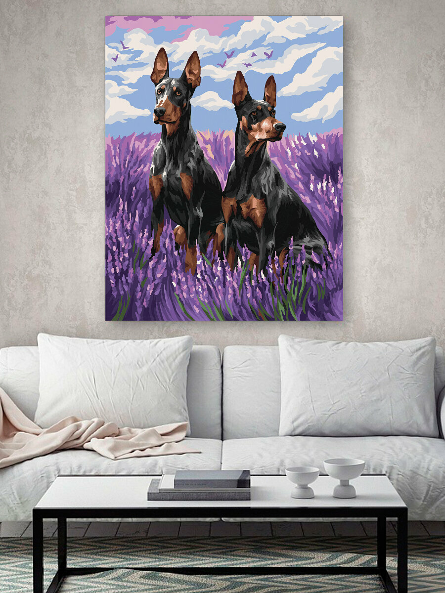Отзывы на Картина по номерам на холсте "Доберманы в лаванде" деревянный подрамник 40х50 см