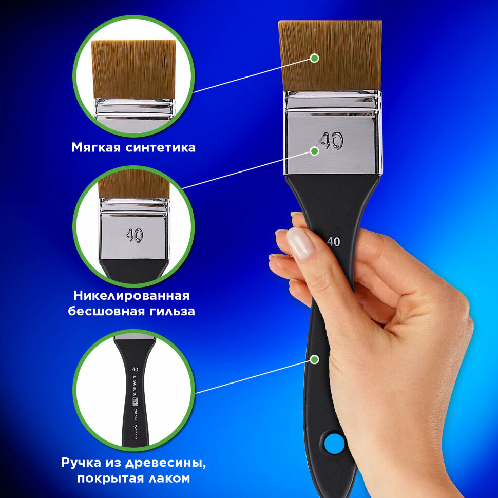 Кисть художественная профессиональная, синтетика, флейц, № 40, BRAUBERG ART CLASSIC, 201036 (201036) информация: