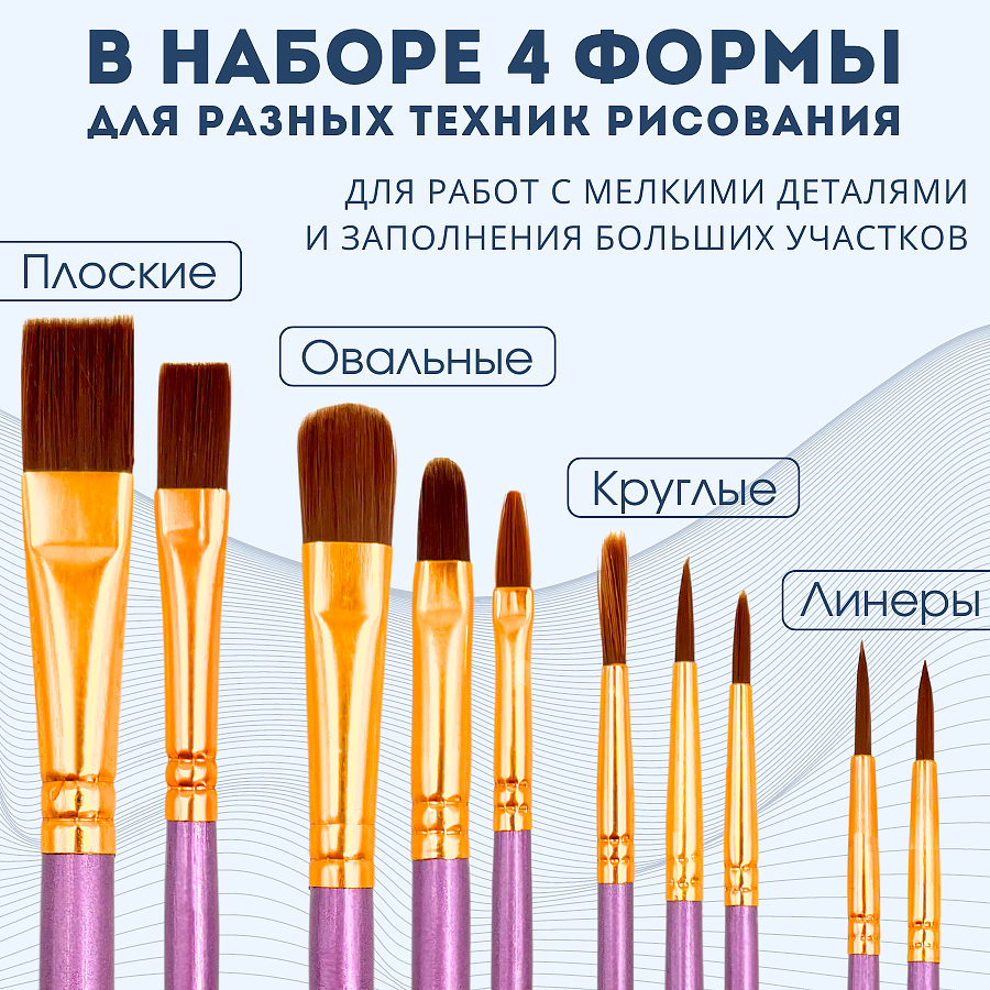 Кисти для рисования художественные набор 10 шт, фиолетовый информация: