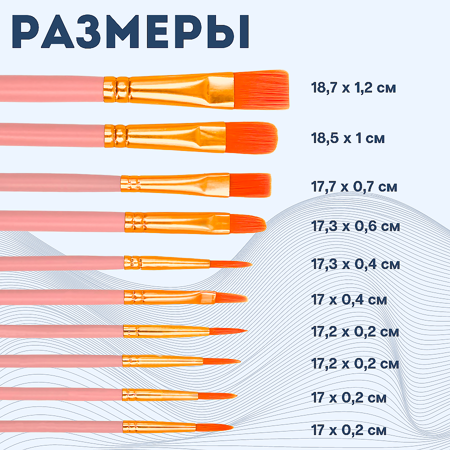 Кисти для рисования художественные набор 10 шт, розовый информация: