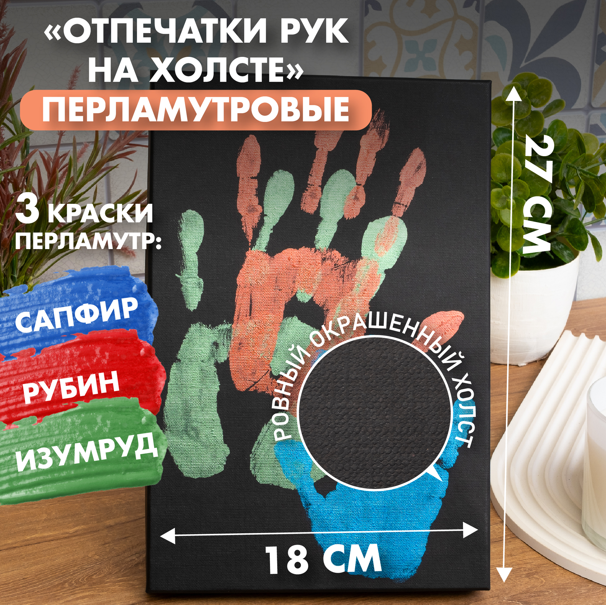 Отзывы на Отпечаток рук на холсте PixSmart черный с перламутровыми красками