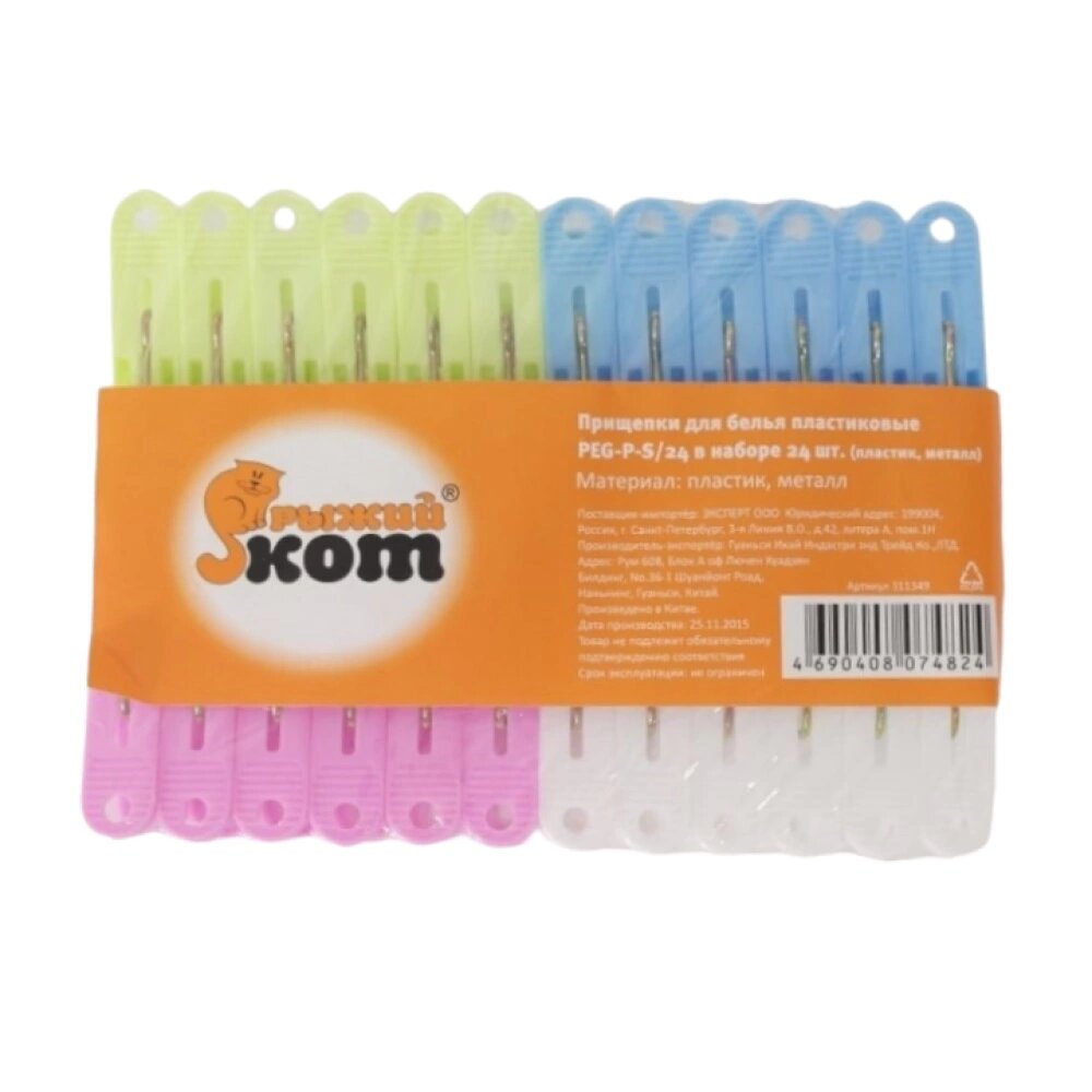 | Комплектация | Прищепки для белья Рыжий кот PEG-P-S/24, пластиковые, в наборе 24 шт. |