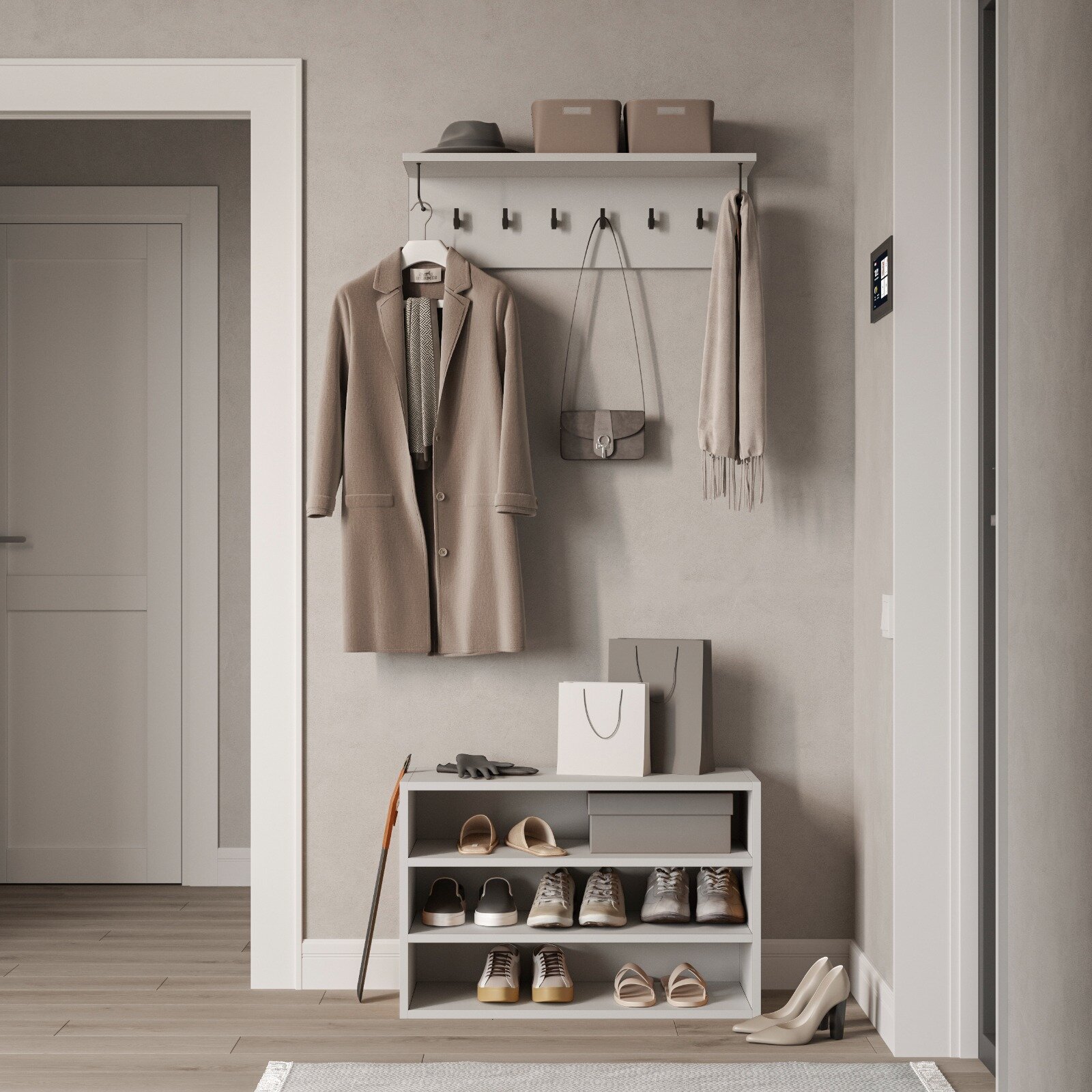 Вешалка полка настенная в прихожую Белая Крафт 5 1 250 ₽