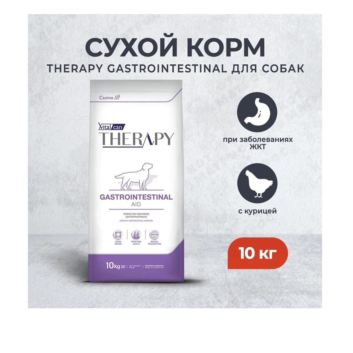 Сухой корм Vitalcan Therapy Canine Gastrointestinal Aid для собак всех возрастов при болезнях ЖКТ, с курицей, 10 кг информация: