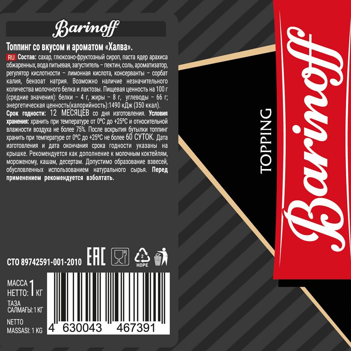 Топпинг Barinoff Халва (для кофе , мороженого и десертов),1 кг информация:
