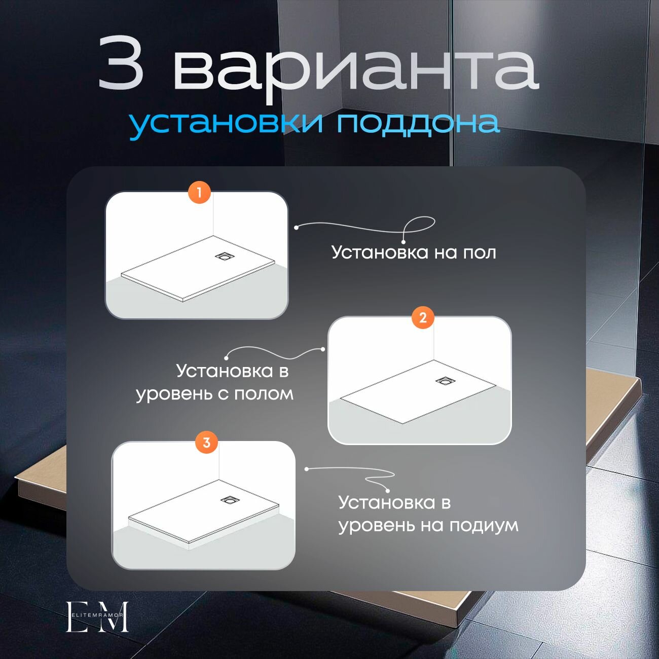 Поддон для душа 170х80 см, ELITE MRAMOR, серый искусственный камень 38 500 ₽