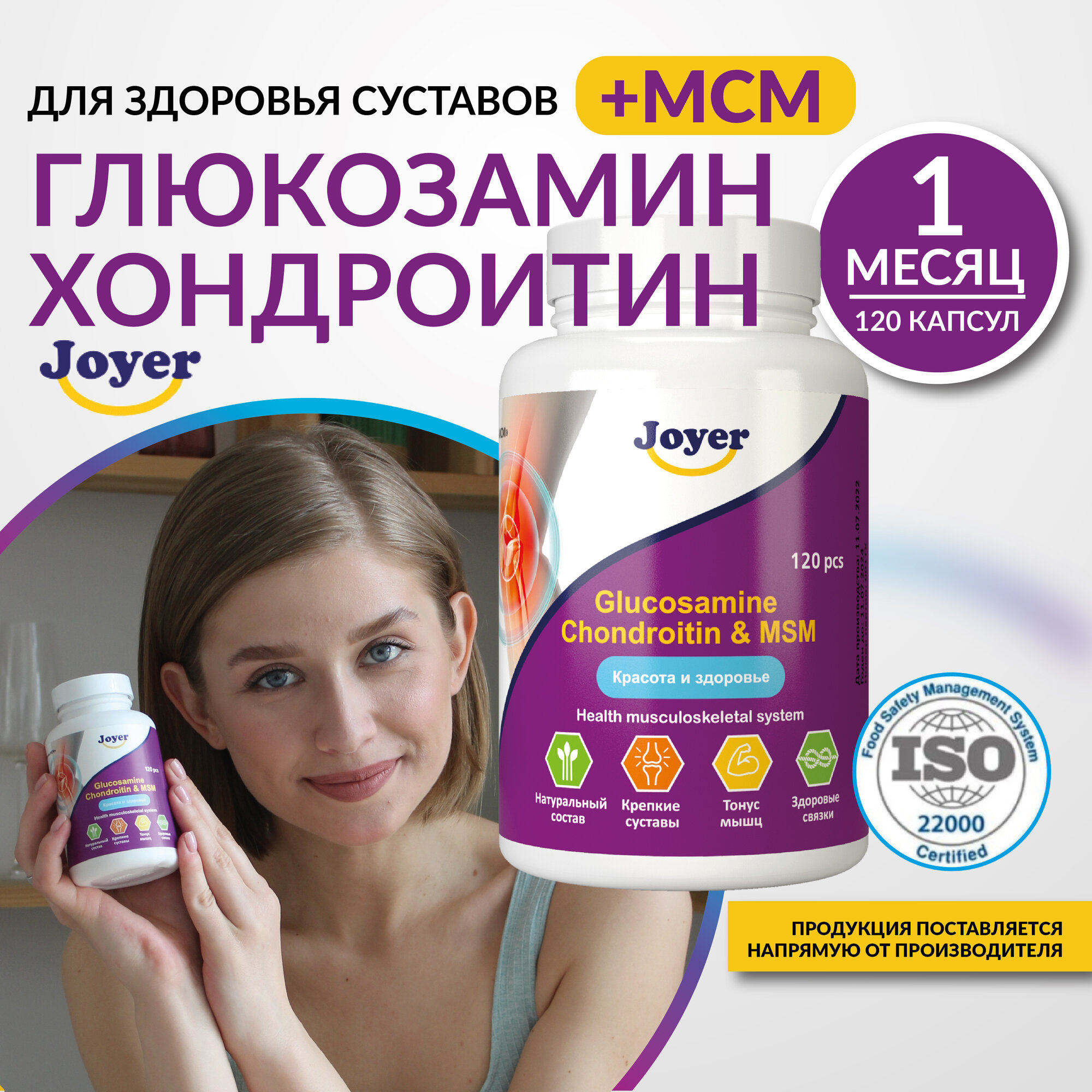 Глюкозамин-Хондроитин-МСМ Joyer, для суставов, без ГМО и глютена информация: