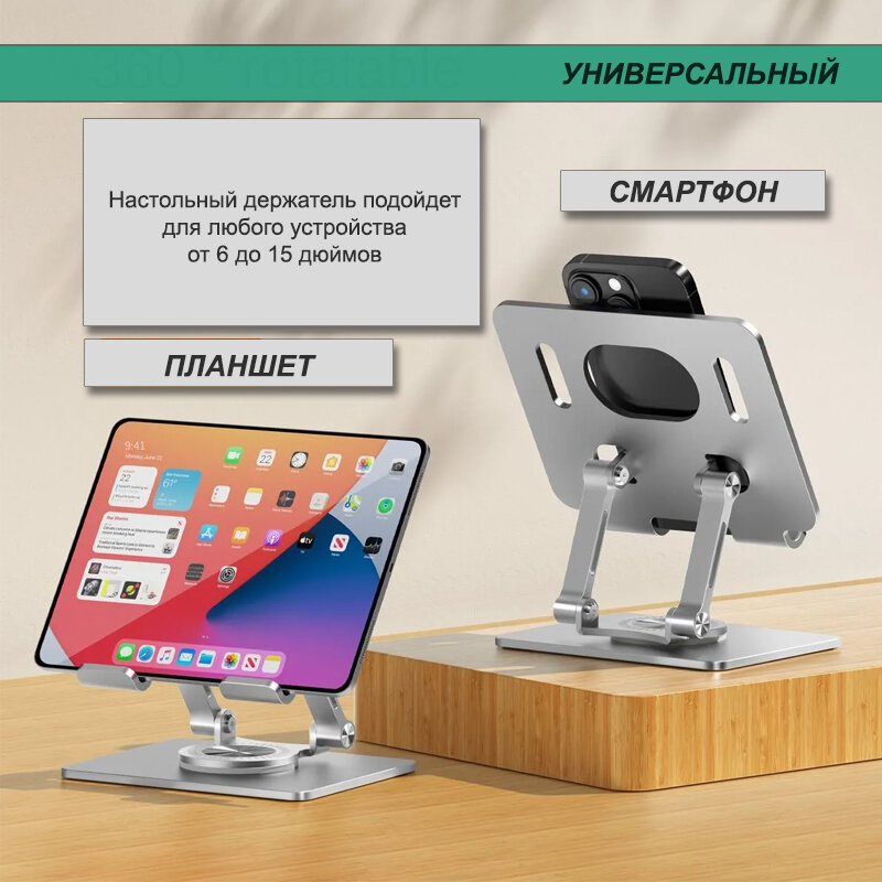 Металлическая подставка для телефона и планшета, Вращение 360, Серая информация: