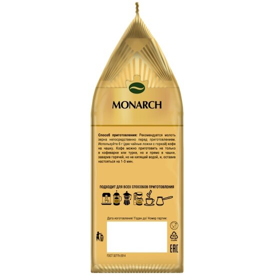 Кофе в зернах Monarch Gold Arabica, 200 г информация: