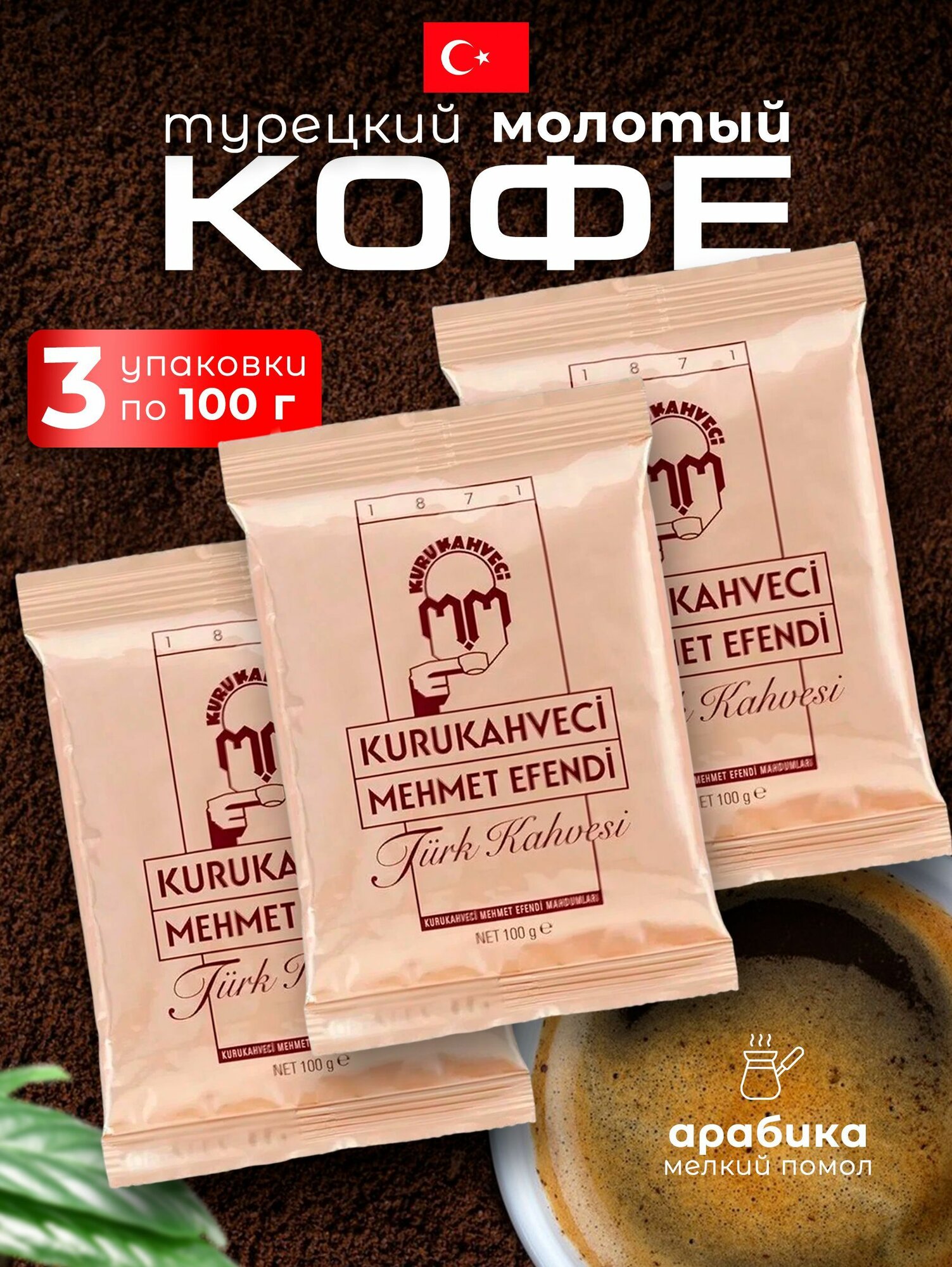 10 цен на Кофе турецкий Kurukahveci Mehmet Efendi арабика мелкий помол 3 шт по 100 гр