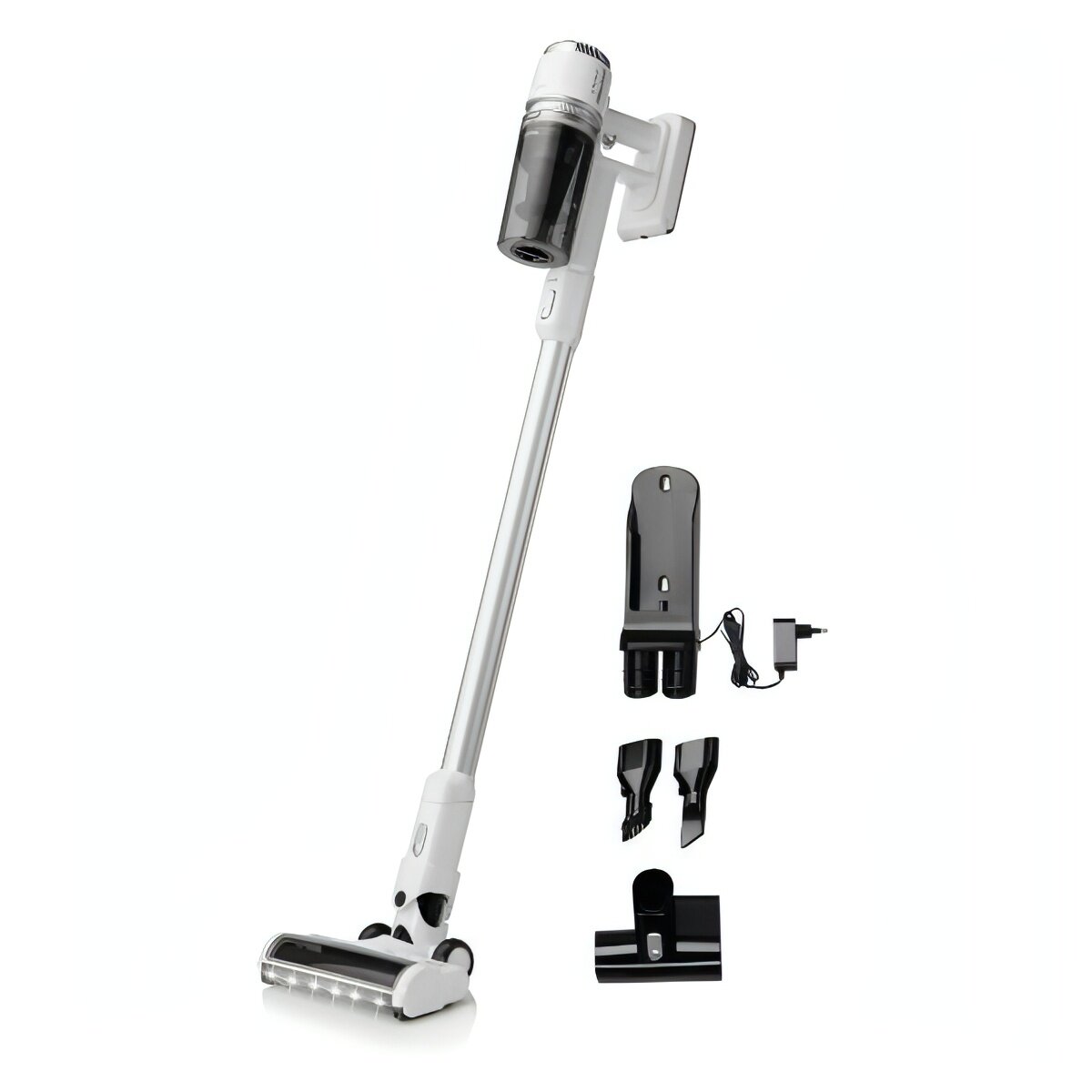 | Дополнительная информация | Индикация работы; Индикатор уровня зарядки; Отключение при перегреве; Плавный запуск двигателя; Крепление на стену; Съемные моющиеся фильтры; Индикация режима работы; Индикация разрядки аккумулятора; HEPA фильтр; Циклонный фильтр; Моторный фильтр; Турбо режим; Сухая уборка; Комплектация: Зарядное устройство, Подставка для вертикальной установки |